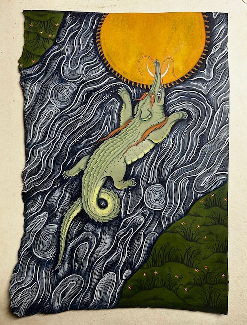 Rati Devi Sivyer’s work is rooted in the traditional techniques and materials of Indian miniature painting. Sivyer explores a balance between the contained, the container, and the potential of space beyond, a theme echoed throughout her work in her use of bird, egg, and nest motifs. Her intentional process of creation has developed into a distinct visual language, telling stories of cyclical temporalities.